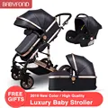 EU fast sihp ! luxurious 3 in 1 baby stroller aluminium alloy baby pram leather two-way shock baby trolley with gifts umbrellaBrand 3 in 1 baby stroller folding two-way push luxury high landscape baby carriage with comfortable car seat trolley babyfond