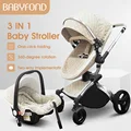 Babyfond luxury baby stroller 3 in 1 Fashion Carriage 360 degree rotation two-way Trolley PU Aluminum alloy Gold Frame Baby Pram