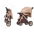 Features:◆Shake-proof springs, protect baby's brain, suit any type of terrain. Explosion-proof tire, 2 front omni-direction wheel to freely move baby everywhere.◆High view design, pedal-like brakes at rear.◆Foldable design, quick to unfold & space-saving. Constructed with sturdy aluminum alloy, anti-rust & sturdy.◆3 angle adjustable seat: 100°/145°/175°. Reversible baby seat, baby can face you or face the street.