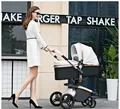New Fast shipping AulonPU leather 360-degree rotating baby stroller can sit reclining foldable two-in-o