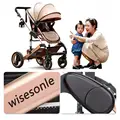 High Landscape Fold Baby stroller, 2 in 1 baby carriage with rubber wheel, good shock absorption baby pram with aluminum alloy frame