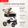 Best PU material 3in1 stroller two-way implementation can sit reclining waterproof sleeping basket baby