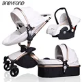 In Stock Newborn 3 in 1 luxury stroller Babyfond Two-way foldable four-wheeled Baby Pram leather aluminium a